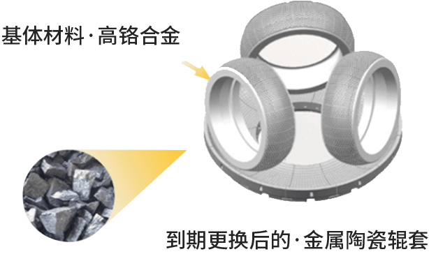 使用壽命是堆焊、高鉻材質(zhì)輥套的2.0-3.0倍
